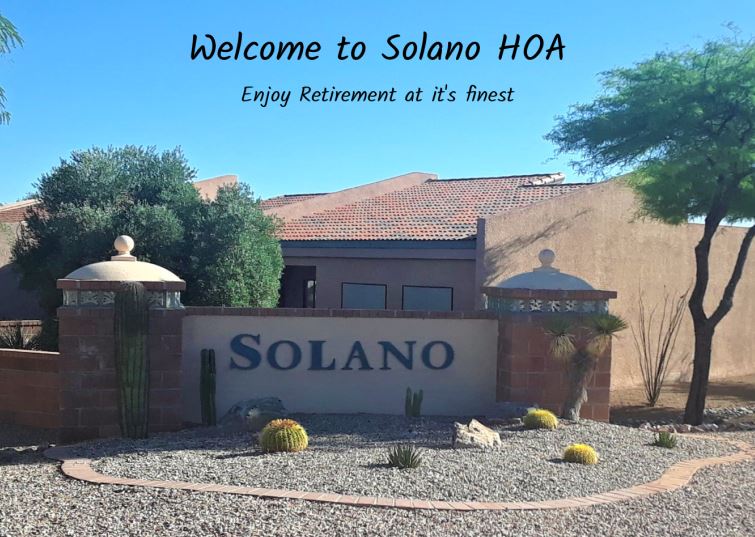 Solano is an age-restricted, active adult community of 143 homes located in Green Valley, AZ just 20 miles south of Tucson. The Santa Rita Mountains to the east provide a beautiful backdrop to our community where biking, birding, pickleball, golf and desert hiking are all just minutes away. We are located within walking distance of the Las Campanas Social Center that offers swimming and exercise facilities, tennis and racquetball courts, as well as club and meeting spaces. Come enjoy retirement at it’s finest surrounded by natural desert landscapes and friendly neighbors.